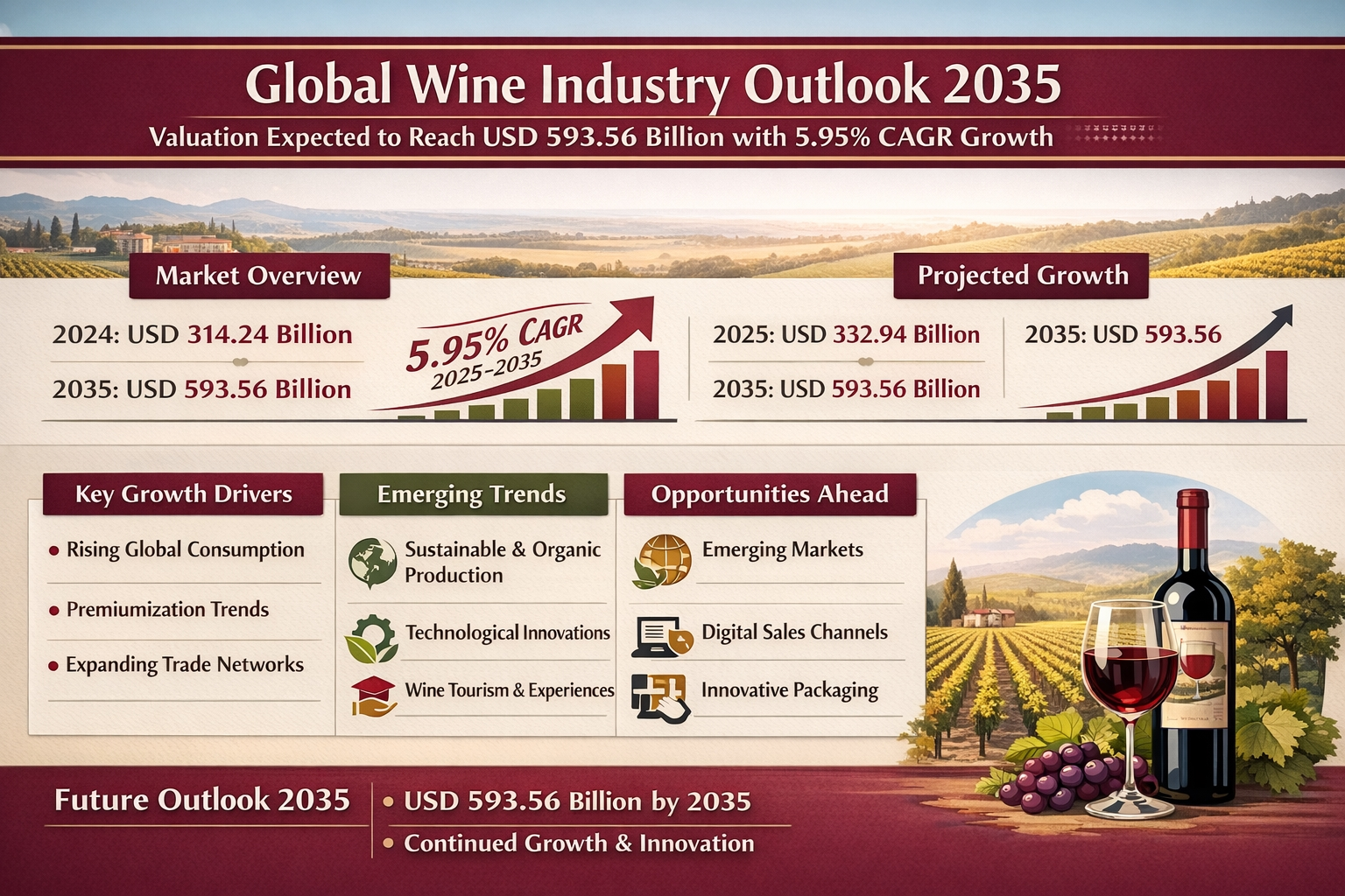 Global Wine Industry Outlook 2035: Valuation Expected to Reach USD 593.56 Billion with Expanding Consumer Demand