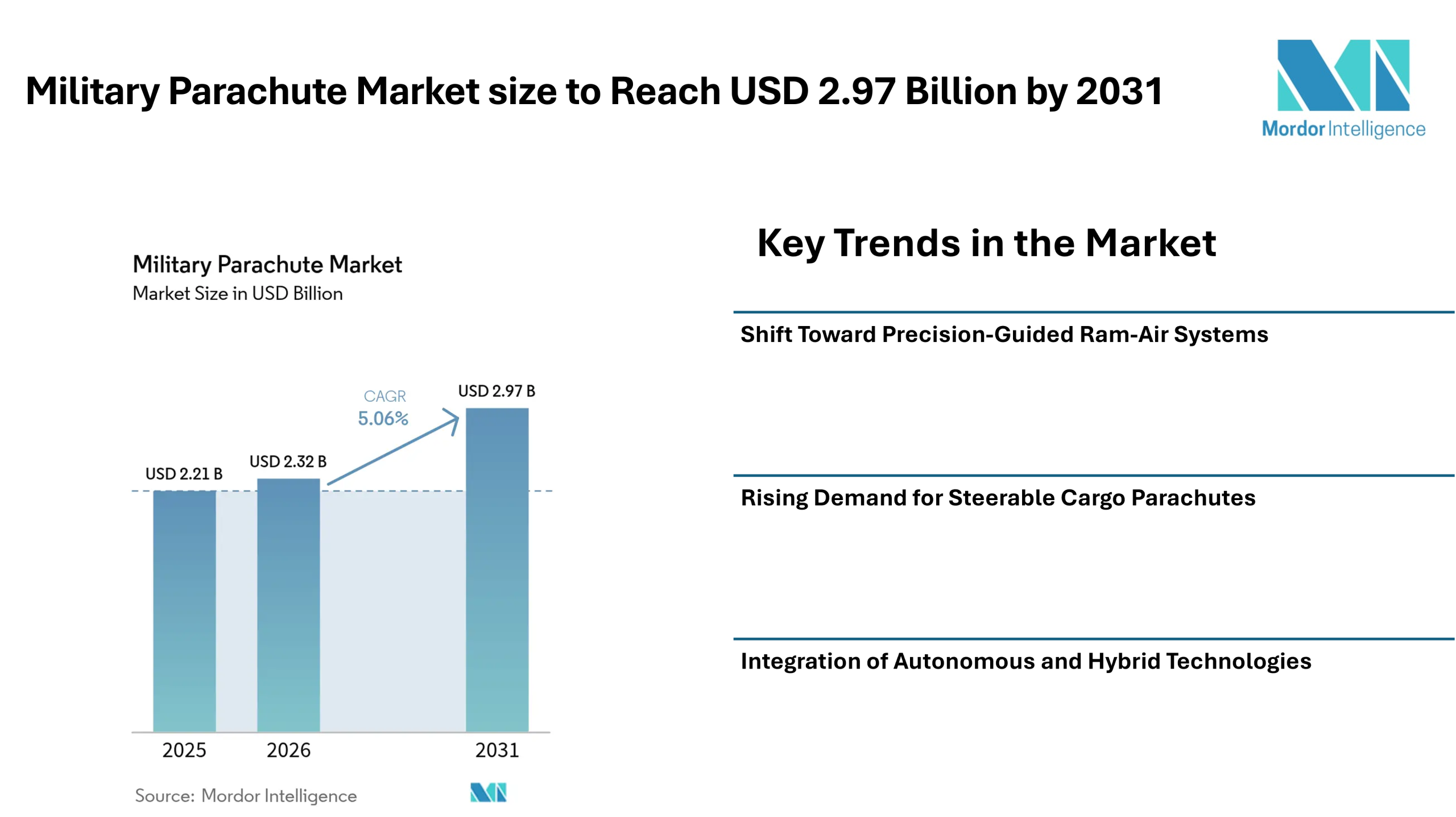 Military Parachute Market size to Reach USD 2.97 Billion by 2031 Driven by Precision Systems and Rising Defense Demand - Mordor Intelligence