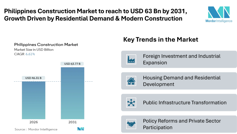 Philippines Construction Market to reach to USD 63 Bn by 2031, Growth Driven by Residential Demand & Modern Construction