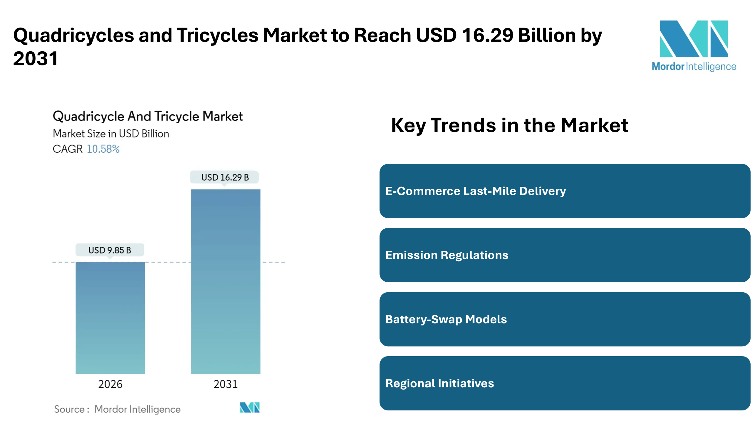Quadricycles and Tricycles Market to Reach USD 16.29 Billion by 2031, Driven by Rising E-Commerce and Electric Mobility Trends – Mordor Intelligence